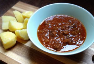 Shaksuka met naan en zoete aardappel