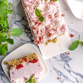 Spuit mooie toefjes op de taart (en bestrooi deze daarna eventueel met gevriesdroogde aardbeien en wat munt).